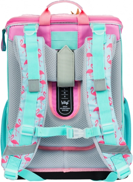 Stap in de wereld van de prachtige flamingo met deze schooltas. De tas is ontworpen voor kinderen vanaf groep 3 en biedt maximaal comfort dankzij de ergonomisch vormgegeven rug en volledig verstelbare schouderriemen. Het speciale rugsysteem ERGO ADJUSTABLE SYSTEM maakt eenvoudige hoogteverstelling van de banden mogelijk, zodat de tas altijd perfect past.