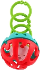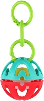 Een kleurrijke bal die kinderen meteen aantrekt. Het speeltje past goed in kleine kinderhandjes. Je kunt de afzonderlijke helften van de bal draaien; zo laat je het balletje rinkelen en prikkel je de nieuwsgierigheid van je kind. Eenvoudig aan de kinderwagen te bevestigen.