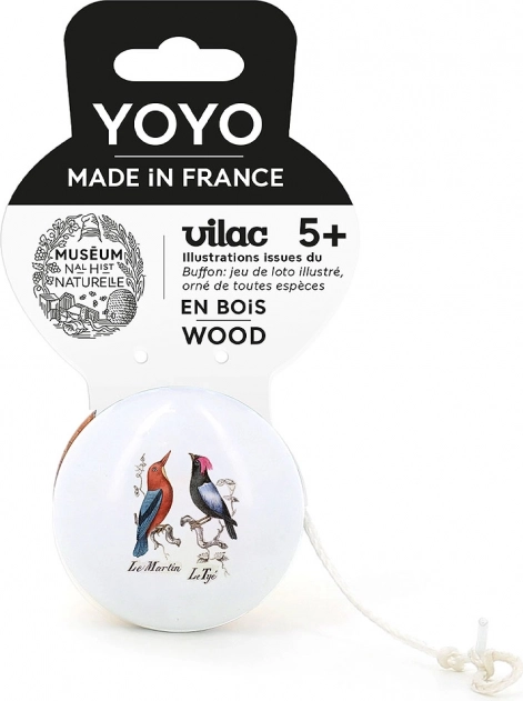 Ontdek de charme van een klassiek spel in een modern jasje. Het houten Vilac jojo Vogels valt op door het gladde gelakte oppervlak, het tijdloze ontwerp en illustraties van zeldzame vogels, geïnspireerd op de collecties van het Muséum national d’Histoire naturelle. Ideaal voor kinderen en volwassenen die hun behendigheid en bewegingscoördinatie willen oefenen.