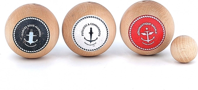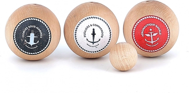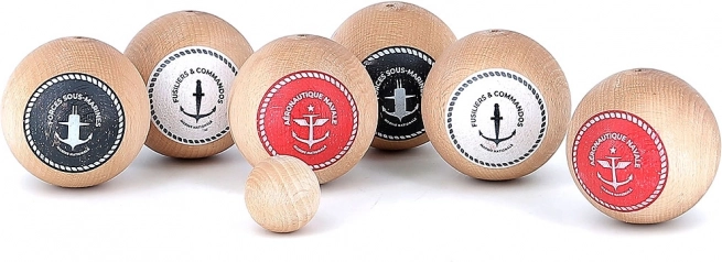 Stijlvolle set voor het traditionele spel pétanque in een ontwerp geïnspireerd door de Franse marine. Bevat 6 speelballen, een doelballetje en een praktische stoffen zak. Gemaakt van massief gelakt hout, milieuvriendelijk en duurzaam. Ideaal voor 2–6 spelers, geschikt vanaf 5 jaar, gemaakt in Frankrijk.
