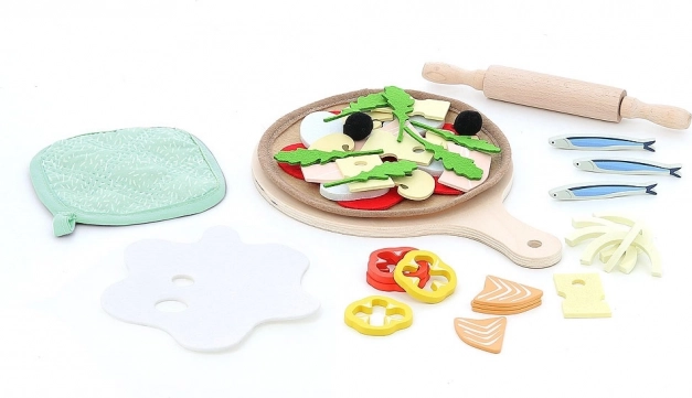 Geef kleine koks een authentieke ervaring van pizzabereiding. De houten set bevat alles wat nodig is om de perfecte pizza te “bakken” – van deeg en onderlegger tot kleurrijke toppings. Dankzij de prettige, natuurlijke materialen is het spel veilig, duurzaam en tactiel aantrekkelijk.