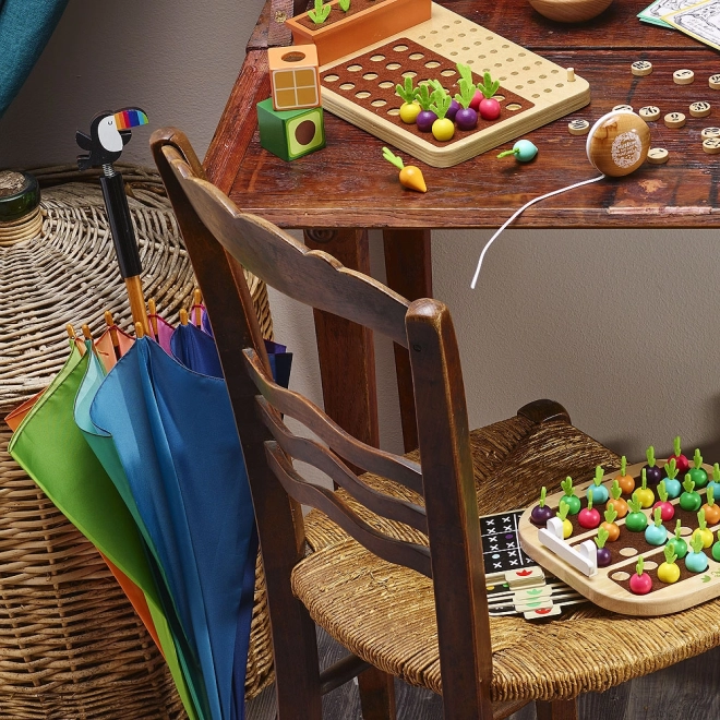 De originele knop in de vorm van een toekan geeft de paraplu karakter en motiveert kinderen om hem met plezier te dragen.