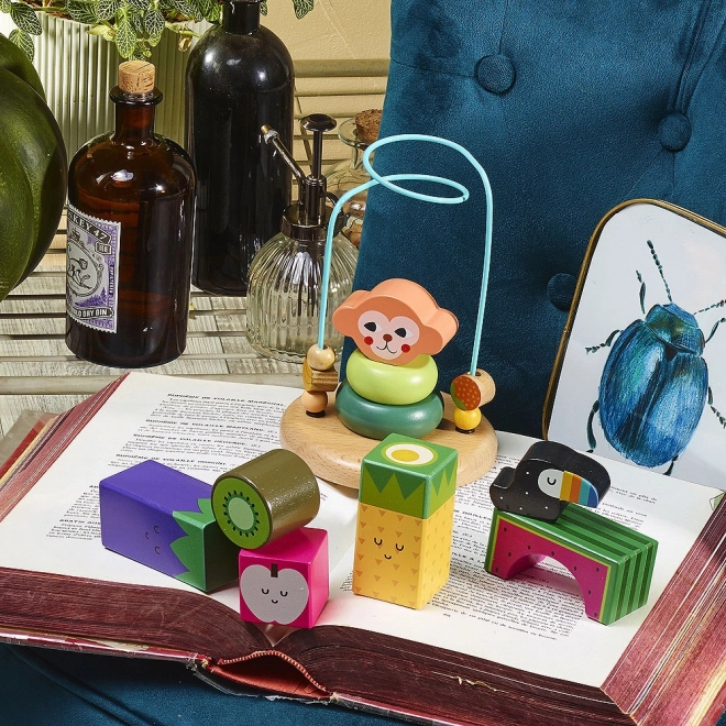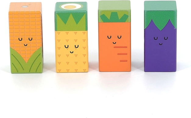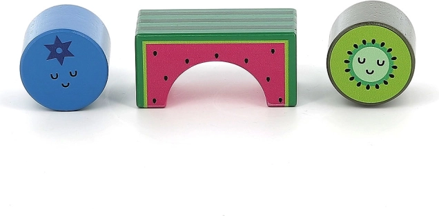 Deze originele set van 11 houten geluidsblokjes met vrolijke fruitmotieven biedt kinderen veel prikkels om te ontdekken. Elk blokje is anders – bij schudden of tikken produceert het unieke geluiden die de zintuiglijke ontwikkeling en nieuwsgierigheid stimuleren. Dankzij het compacte formaat liggen de blokjes goed in kleine handjes en zijn ze ideaal voor eerste bouwpogingen, sorteren en vrij spel.