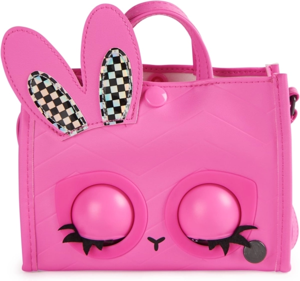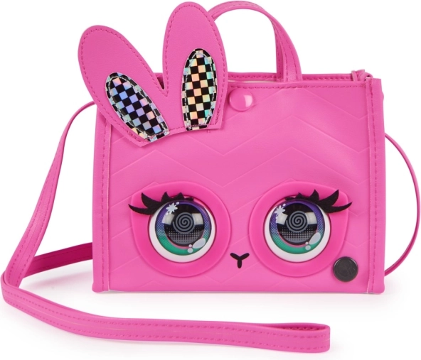 Laat jouw stijl zien met de schattige handtas PURSE PETS Holly Hops in roze design met pop-art ogen en holografische konijnenoren. De tas reageert op aanraking – met knipperen en geluiden – en verandert elke outfit in een speelse show. Dankzij slimme modi genieten kinderen van dansen op het ritme en een staarwedstrijd.