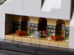 De set bevat ook een gouden minifiguur van de architect van Hogwarts en een plaatje met de tekst “Hogwarts Castle” voor een elegante presentatie op de plank. Een gedetailleerde handleiding is beschikbaar in de doos en in de LEGO Builder-app, zodat je stap voor stap kunt bouwen.