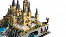 - Model van kasteel en omgeving, minifiguur van de architect van Hogwarts (goud), plaatje met opschrift “Hogwarts Castle”, mini-model van het Durmstrang-schip, koets van Beauxbatons, Ford Anglia bij de Beukwilg