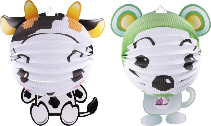 Decoratieve lampionbol met een diameter van 25 cm met dierenmotief, beschikbaar in twee verschillende varianten: koe en muis.