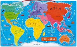 Deze prachtige magnetische wereldkaart heeft afmetingen van 77 x 46 x 1 cm en bevat 92 houten puzzelstukjes. Elk stukje stelt een regio of land voor, vermeldt de naam van de hoofdstad en bevat een afbeelding die de plaats typeert, zoals belangrijke gebouwen, bezienswaardigheden, dieren en planten. De kaart is in het Engels en kan aan de muur worden opgehangen, waardoor het een uniek accessoire voor de kinderkamer is.