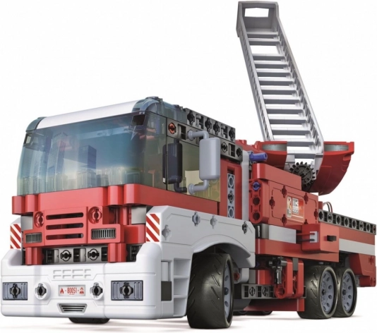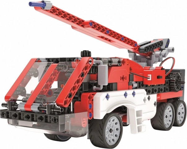 Bouw een realistische brandweerauto en ontdek de principes van mechanica en techniek tijdens geweldig spel. Dankzij de motor draait de ladder 360°, bewegen de wielen en kan de uitschuifbare ladder handmatig worden geheven en neergelaten. Met één set maak je tot 5 verschillende modellen, dus het speelplezier is elke keer anders.