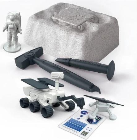Deze interactieve set verbindt wetenschap en plezier: uit de “opgraaf”-gipssteen bevrijd je stap voor stap modellen geïnspireerd door echte NASA-missies. Na het blootleggen kun je de rover en drone bouwen en op je eigen ruimte-expeditie gaan.