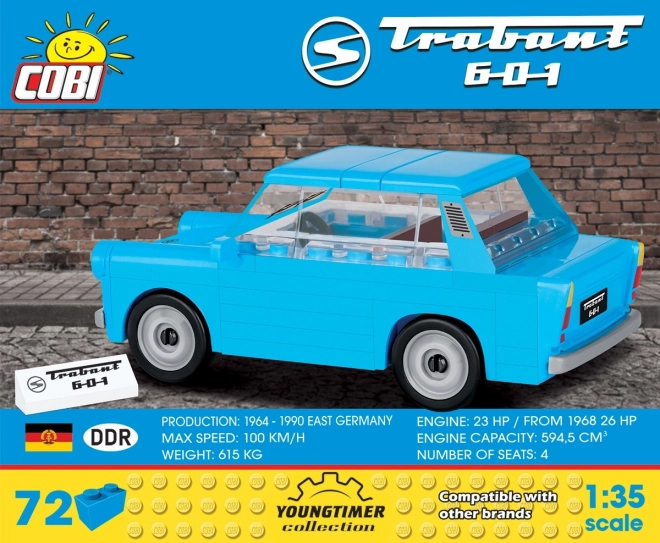 De Trabant 601 behoort tot de bekendste auto’s van Oost-Europa. De COBI-bouwset op schaal 1:35 geeft zijn typische lijnen precies weer en maakt kleine aanpassingen en modificaties mogelijk. Het model staat prachtig op een plank en biedt tegelijk leuk bouwplezier voor zowel kinderen als volwassenen.