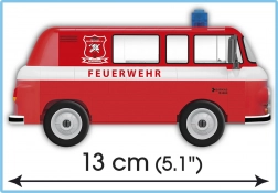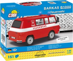 De Barkas B1000 was een iconische bestelwagen en microbus die tussen 1961 en 1991 in de voormalige DDR werd geproduceerd. De Feuerwehr-variant was aangepast aan de behoeften van brandweerkorpsen. Deze COBI-bouwset vangt het karakter van het historische voertuig getrouw in schaal 1:35 en ziet er dankzij de hoogwaardige prints geweldig uit, zelfs zonder stickers.