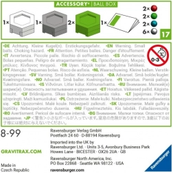 In deze GraviTrax set vind je 12 gekleurde knikkers: 6 zilveren, 2 rode, 2 blauwe en 2 groene. De knikkers kunnen op kleur worden gesorteerd of gemengd volgens je eigen creativiteit. De set bevat ook 4 doosjes voor het organiseren van de knikkers – 2 groene, 1 witte en 1 grijze. Deze doosjes zijn stapelbaar, waardoor ze ook in kleinere ruimtes kunnen worden opgeborgen.