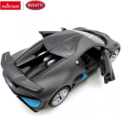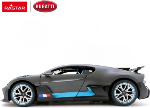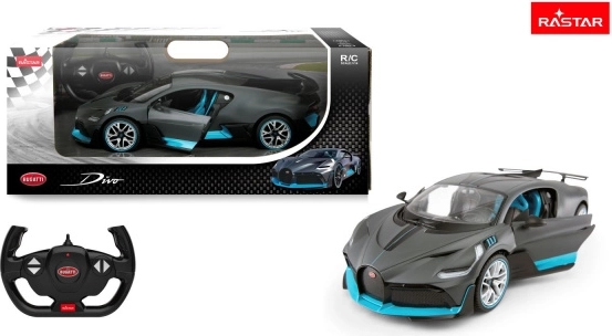Bugatti Divo RASTAR 1:14 – zilveren RC auto met LED‑verlichting, rubberen wielen en 2,4 GHz. Precieze details, onafhankelijke vering, geweldige geschenkverpakking.
