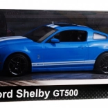 Een getrouwe replica van de Shelby GT500 met racestrepen en precieze carrosseriedetails die elke fan van muscle cars zal waarderen.