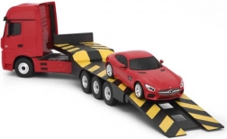 Besturing op 2,4 GHz biedt een betrouwbare reikwijdte en de mogelijkheid om met meerdere modellen tegelijk te rijden zonder storingen. De Mercedes-Benz Actros beschikt bovendien over werkende verlichting tijdens het rijden, de oplegger maakt eenvoudig “opladen” van de AMG GT mogelijk en zo is realistisch transport en dynamisch manoeuvreren gegarandeerd.