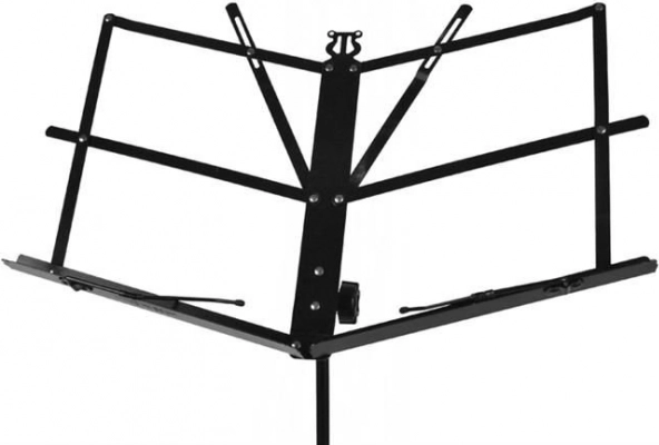 Deze geschilderde metalen muziekstandaard is uitgerust met een driepoot basis en verstelbare hoogte, wat gebruik in zowel staande als zittende positie mogelijk maakt. De standaard kan zelfs op een tafel worden geplaatst wanneer ingesteld op de laagste hoogte. Opklapbaar blad past zich gemakkelijk aan je behoeften aan, terwijl de verstelbare hoek het dichtvallen van bladmuziek voorkomt. Geschikt voor zowel professionals als amateurs.