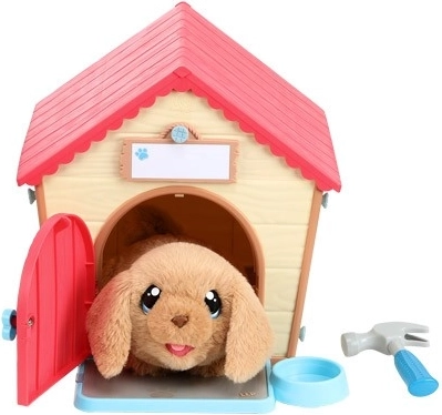 Maar een verrassing! In het huisje is op magische wijze een hondje verschenen! Het puppy is interactief en reageert op aanraking. Stop het bot in de bek van het pupje en het zal ermee gaan spelen en daarbij geluiden maken.