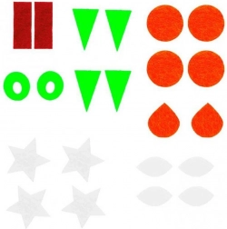 De set bevat viltelementen en kaarten met motieven die helpen bij de eerste pogingen en bij het nauwkeurig nabootsen van vormen en scènes.
