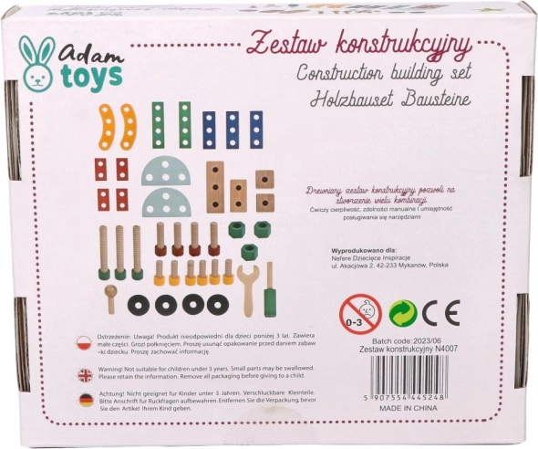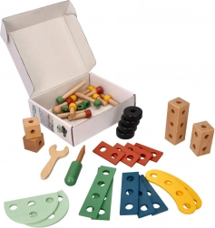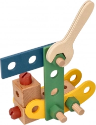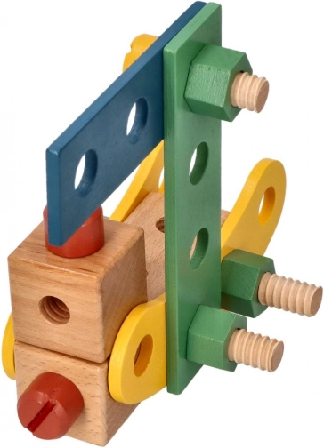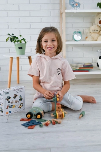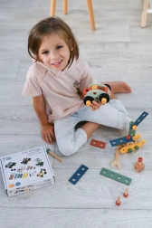 Maak kennis met de unieke Houten constructieset voor kinderen, die de ontwikkeling van oog-handcoördinatie, logisch denken en creativiteit stimuleert. De set bevat schroeven, latjes, moeren, wielen en ook een schroevendraaier en een sleutel – alles wat nodig is om voertuigen te bouwen.