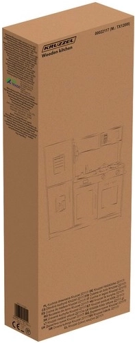 Stijlvolle houten XL keuken van het merk KRUZZEL in het wit met gouden details biedt realistisch speelplezier dankzij LED-verlichting, brandergeluiden en een uitgebreide set accessoires. De stevige houten constructie, functionele deurtjes met “klik”, een uitneembare gootsteen en apparaten zoals een oven en magnetron stimuleren creatief spel en ontwikkelen de fijne motoriek.