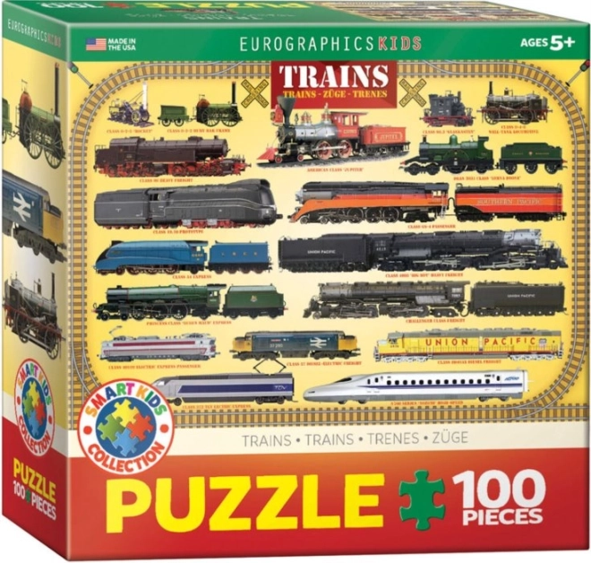Ontdek een leuke en leerzame puzzel met treinmotief van het merk EUROGRAPHICS, ideaal voor kinderen vanaf 5 jaar. De puzzel met 100 stukjes ontwikkelt fijne motoriek, logisch denken en geduld. De teksten op de puzzel zijn in het Engels en het voltooide werk heeft een afmeting van ca. 48,3 × 33 cm.