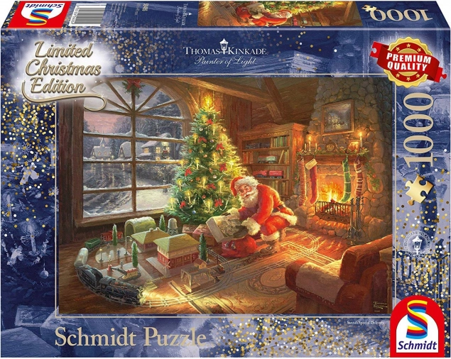 Stap de magische wereld van Kerst binnen met de gelimiteerde puzzel Schmidt Santa’s geschenken. Het motief van de beroemde kunstenaar Thomas Kinkade brengt een warme feestelijke sfeer en een gedetailleerd uitgewerkte winterscène. Dankzij de precieze stans en het stevige karton sluiten de stukjes makkelijk aan en blijven ze goed zitten.