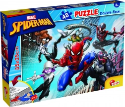 De dubbelzijdige SPIDER-MAN-puzzel van het merk Lisciani biedt een geweldige combinatie van leggen en creëren. Na het leggen van de afbeelding aan de ene kant draaien kinderen de stukjes om en kunnen ze aan de andere kant met hun eigen kleuren de stripwereld van hun held tot leven brengen. Het formaat van 35 × 25 cm en 48 stukjes is ideaal voor jonge puzzelaars.