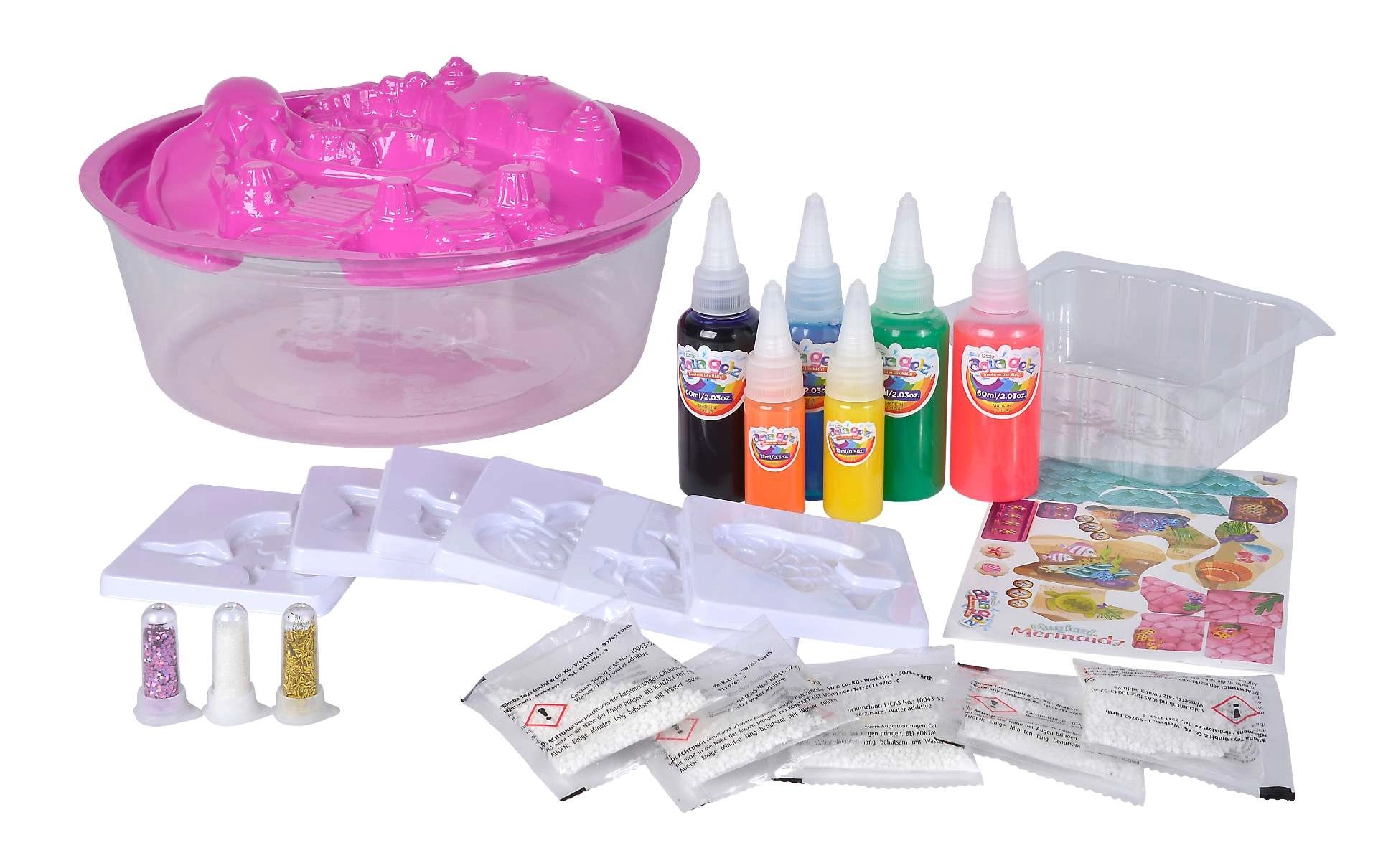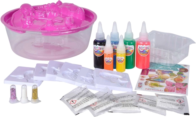 De set Aqua Gelz Magische zeemeerminnen biedt kinderen eindeloos plezier met water of aan tafel. Met een speciale oplossing en gekleurde gels maken ze in een handomdraai 3D-figuurtjes van zeewezens en zeemeerminnen. Dankzij de eenvoudige werkwijze en de precieze applicatieflesjes is knutselen gemakkelijk, schoon en boeiend.