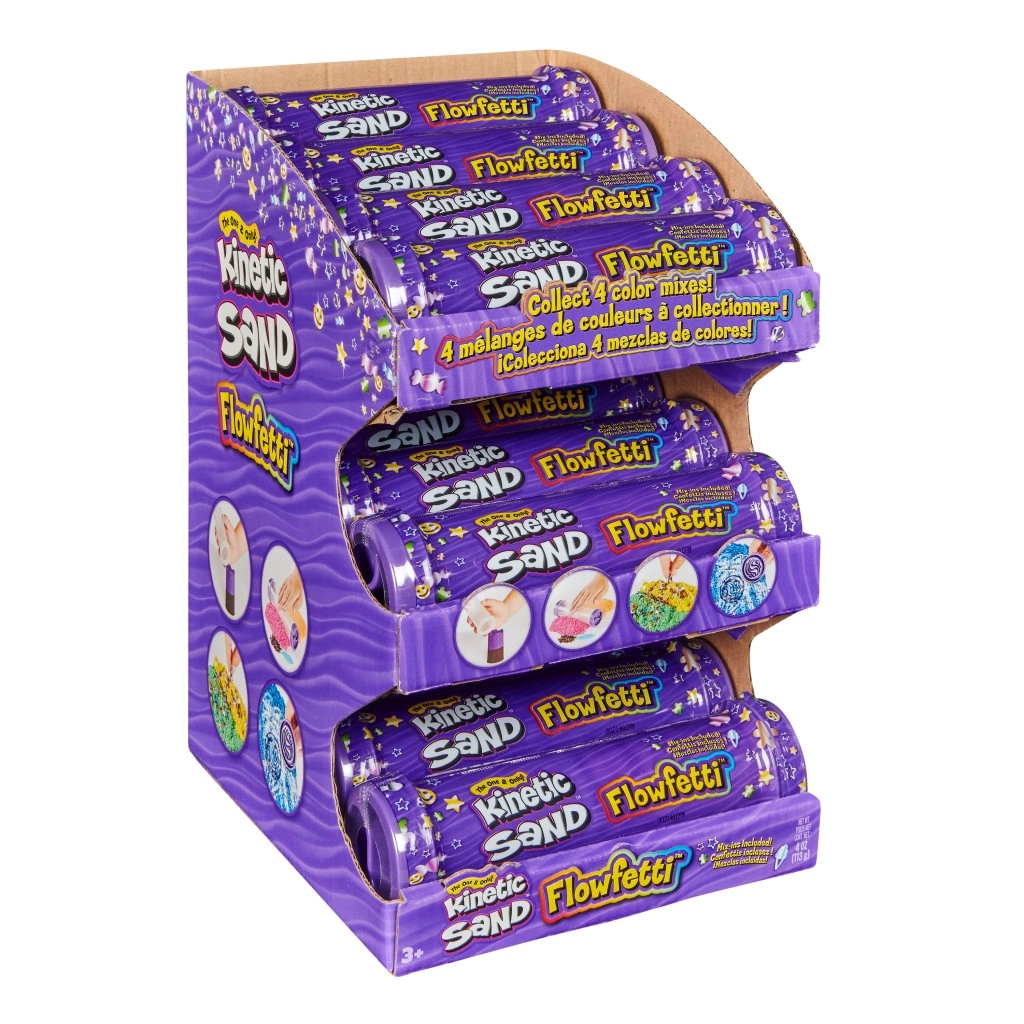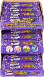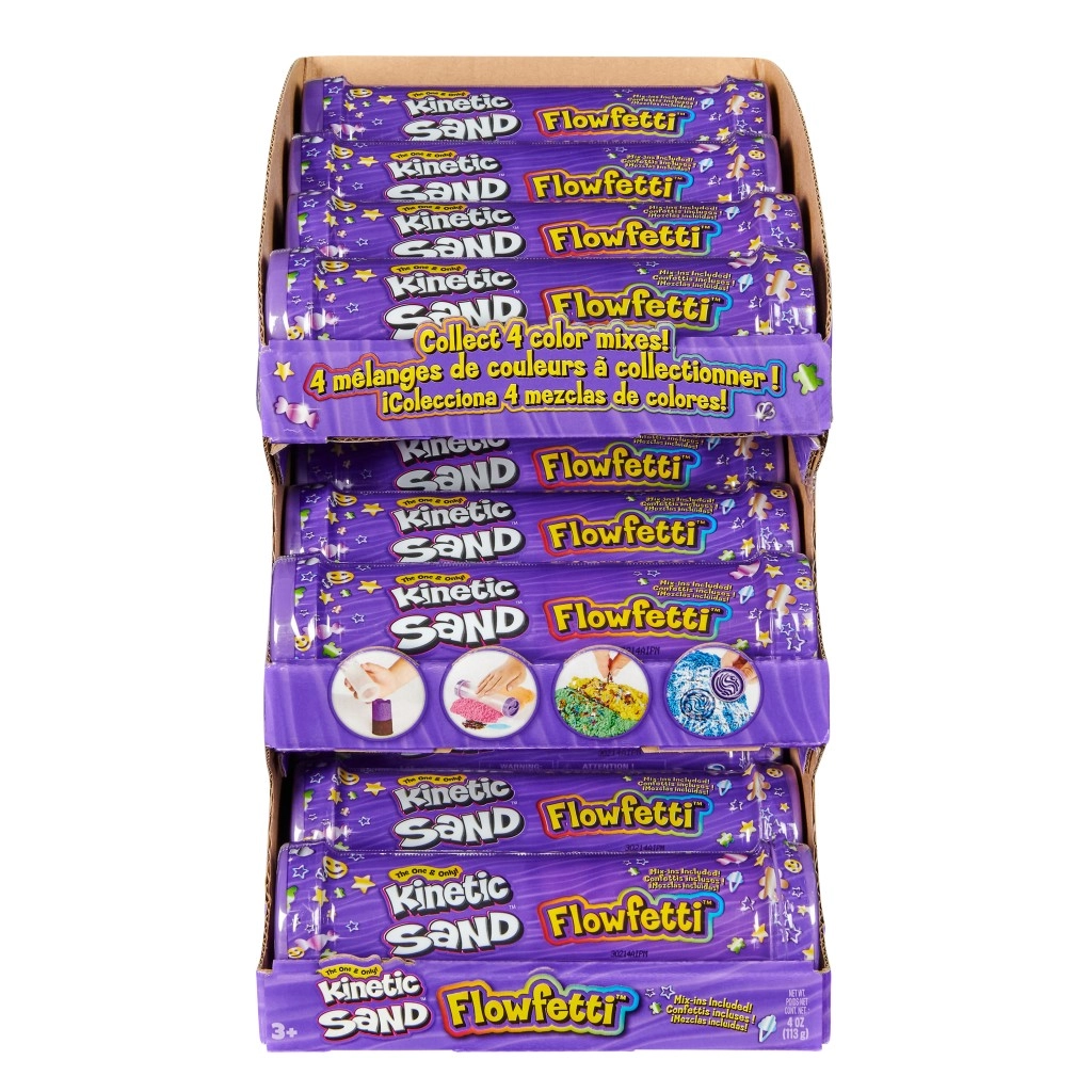 Duik in de wereld van creëren met KINETIC SAND Flowfetti – een combinatie van zacht kinetisch zand en glinsterende confetti voor een ultieme sensorische ervaring. Elke tube bevat 2 kleuren zand, leuke glitters en gereedschap geïnspireerd op de thema’s zoetigheden, strand of galaxie. Dankzij de compacte verpakking neem je het spel gemakkelijk overal mee naartoe.