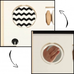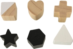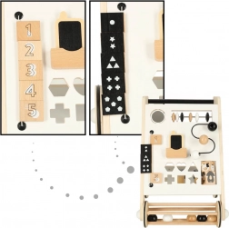 De houten constructie en het minimalisme in het ontwerp bieden interactieve ervaringen en leren basisconcepten van geometrie en cijfers aan.