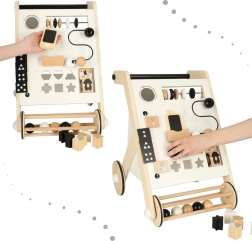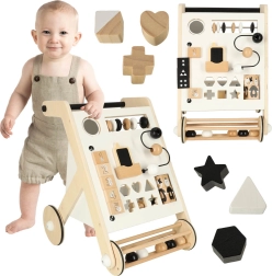 De eerste stappen van een peuter kunnen een uitdaging zijn, maar met onze houten loopwagen, die spel en leren combineert, zal dit proces eenvoudiger en leuker zijn. Dit hulpmiddel is uitgerust met educatieve speeltuigen die de verbeelding prikkelen en de fijne motoriek verbeteren. Het verplaatsen van kralen, sorteren van blokken en draaien van cijfers - al deze activiteiten helpen bij de ontwikkeling van vaardigheden.