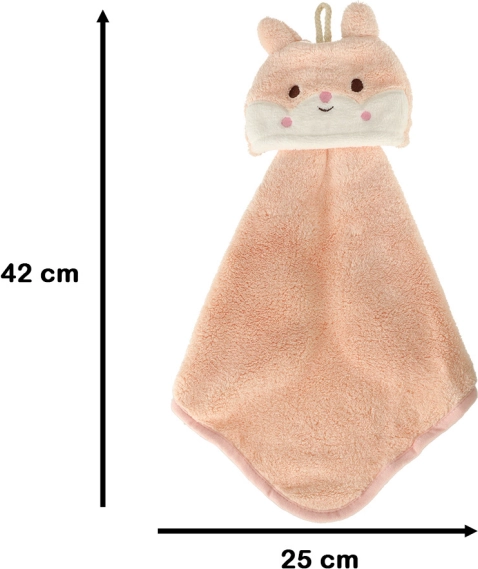 Schattige kinderhanddoek met konijntjesmotief, ideaal voor in de badkamer en op de opvang/kleuterschool. Het compacte formaat van 42 × 25 cm maakt zelfstandig handen afdrogen gemakkelijk, heeft een praktisch ophanglusje en een zakje om eenvoudig op te vouwen en mee te nemen. Het materiaal is zacht aanvoelend, de handdoek is machinewasbaar op 30 °C en dankzij het formaat perfect voor dagelijkse kindhygiëne.
