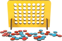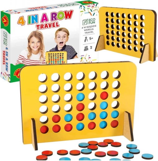 Speel het populaire spel Vier op een rij, nu in de reisversie, en beleef plezier altijd en overal. Het doel van het spel is om vier fiches van dezelfde kleur op één rij te plaatsen, horizontaal, verticaal of diagonaal. Het houten bord met openingen maakt het gemakkelijk om de fiches in te voegen.
