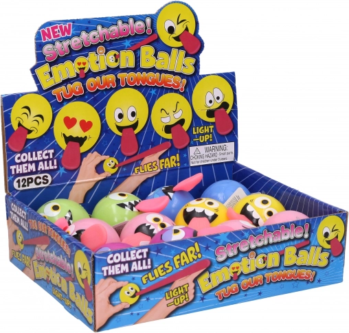 Een leuke lichtgevende bal met een glimlach en uitgestoken tong die zowel kinderen als volwassenen verrast. Biedt lichteffecten, een uittrekbare tong en een compact diameter van 5,5 cm – ideaal in de hand en om te ontspannen.