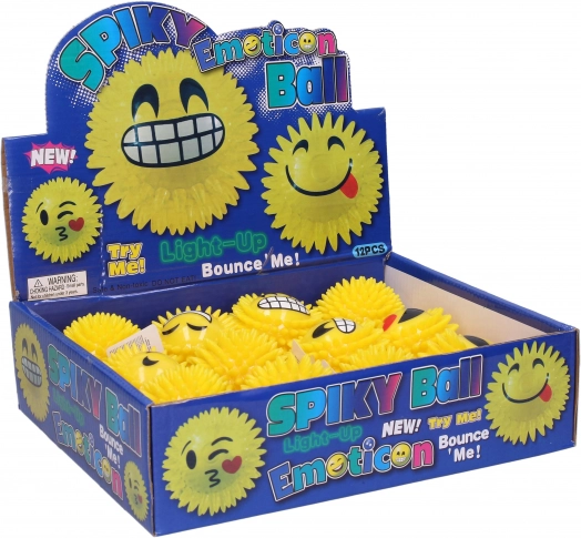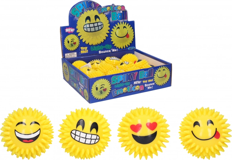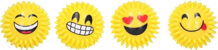 Een leuk balletje met glimlach met een diameter van 7 cm dat piept bij indrukken en dankzij ingebouwde LED’s lichteffecten biedt. Zachte stekeltjes voor een aangename grip en extra speelplezier. Ideaal voor kinderen en ook als leuke antistress-speelgoed. Batterijen zijn niet vervangbaar.