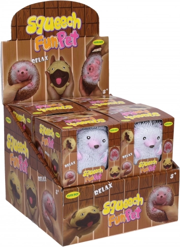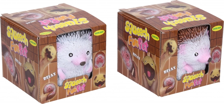 Knijp-egeltje 10 cm – anti-stress speelgoed voor kinderen en volwassenen. Prettig in de hand, 2 kleuren (bruin, zwart), verpakking in displaydoos per 8 stuks.