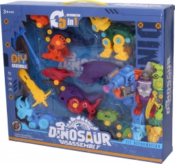 De 5-in-1 schroefset dinosaurussen zorgt voor urenlang creatieve speelpret. Elk van de vijf dinosaurussen kan afzonderlijk worden gemonteerd met eenvoudige schroefonderdelen en vervolgens kunnen ze allemaal worden gecombineerd tot één transformerende robot met een schietend wapen. Het speelgoed stimuleert geduld, concentratie en de ontwikkeling van technisch inzicht.