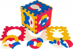 De middendelen in de vorm van dieren kunnen worden verwijderd en weer in de uitsparingen worden geplaatst of gebruikt om ruimtelijke objecten te maken, bijvoorbeeld een kubus. Plezier dat de fijne motoriek en verbeelding ontwikkelt.