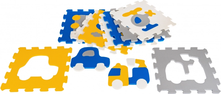 Deze schuimpuzzel-speelmat met auto’s, vliegtuigen en andere voertuigen is ideaal voor de kinderkamer en speelhoek. Met 9 grote tegels maak je snel een zacht speeloppervlak dat beschermt tegen kou vanaf de vloer en vallen dempt. De uitneembare vormen uit elke tegel werken als losse puzzels en ondersteunen leren door te spelen – het herkennen van vormen en kleuren, oog-handcoördinatie en logisch denken.