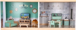 Elke verdieping biedt een andere stijl kamer – woonkamer, keuken, slaapkamer en een balkon. Kinderen kunnen gemakkelijk meubels verplaatsen en nieuwe scenario’s creëren.