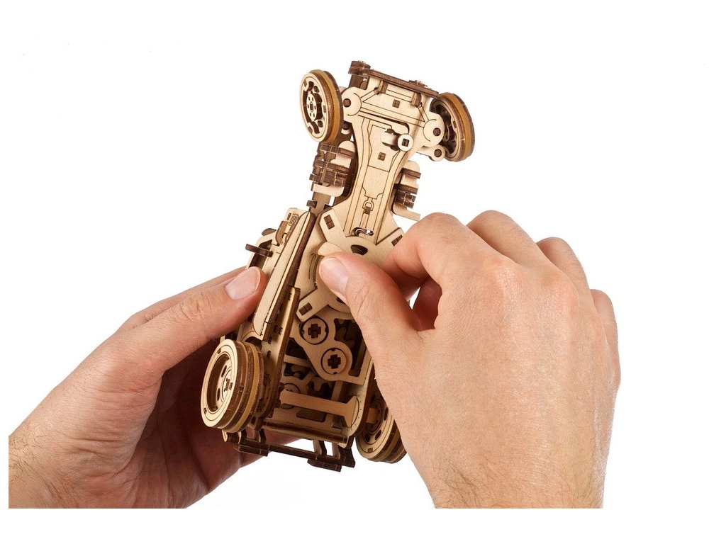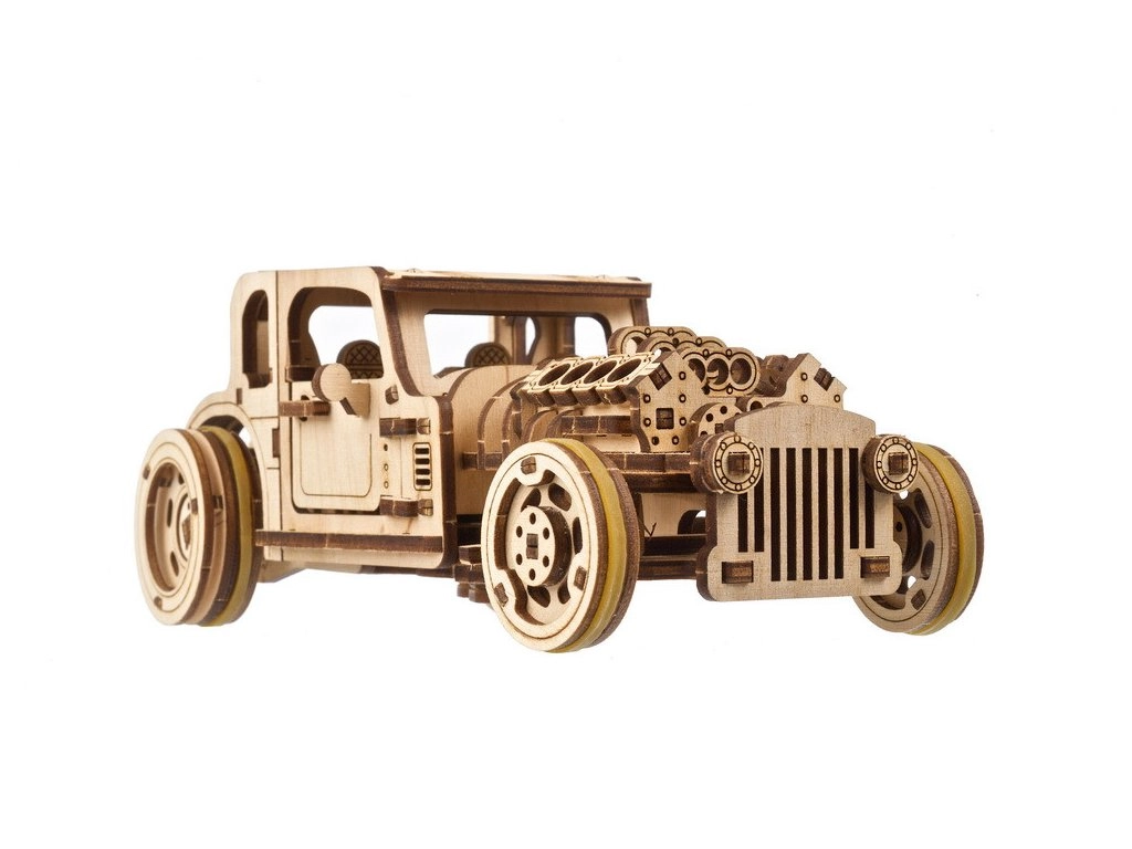 Verwen jezelf met een authentieke hot rod van UGEARS. Het model Furious Mouse zal autoliefhebbers en 3D-puzzelfans bekoren: het biedt twee manieren van aandrijving (een met een sleutel opgewonden veermotor of klassiek terugtrekken op een vlakke ondergrond), soepele besturing van de voorwielen en rijke mechanische details. Dankzij de nauwkeurige laseruitsnijding passen de onderdelen perfect, waardoor je geen lijm of speciaal gereedschap nodig hebt voor de bouw.