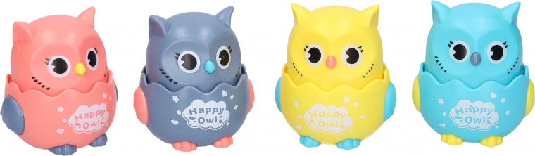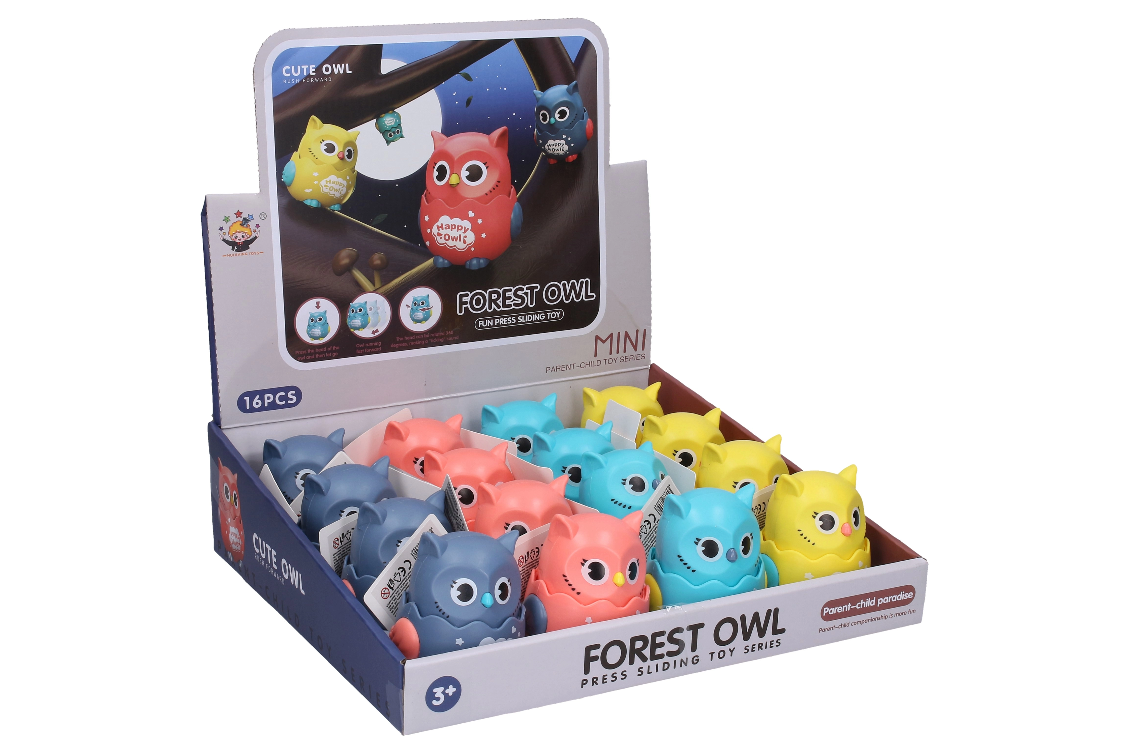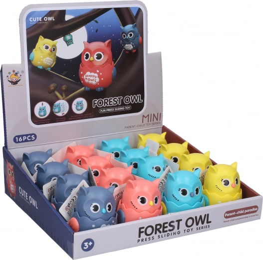 Een schattige uil op wieltjes van 8 cm maakt elk kind vanaf 3 jaar blij. Dankzij het slimme mechanisme rijdt hij weg zodra je op het hoofd naar beneden drukt, voor eindeloos speelplezier. Verkrijgbaar in 4 kleurvarianten – blauw, grijs, geel en roze.