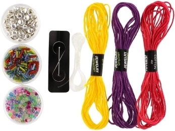 Maak je eigen originele armbandjes, kettingen en hangers met deze complete creatieve sieradenset. Je vindt erin belletjes, elastisch koord, gekleurde katoendraad, kralen in verschillende vormen, verbindingsringetjes en een naald – alles wat je nodig hebt voor snel en leuk knutselen. Een geweldig cadeau voor kleine makers vanaf 6 jaar.