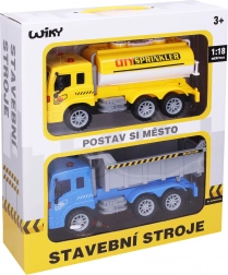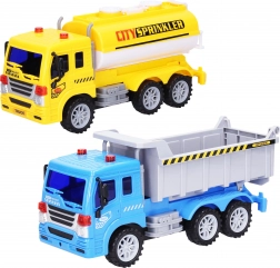 Een leuke set voor kleine chauffeurs met een kippers, een tankwagen en verkeersborden van 25 cm. De autootjes rijden op een frictiemotor, waardoor ze gemakkelijk te bedienen zijn en veel actieplezier bieden, terwijl kinderen tegelijk de verkeersregels leren.