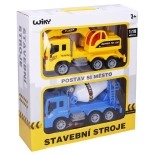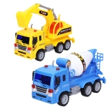 Bouwvoertuigen 23 cm met graafmachine, betonnen mixer en verkeersborden. Geschikt voor alle kleine bouwers.