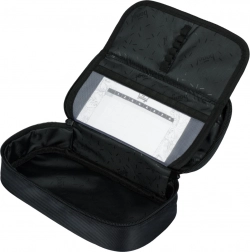 De etui is uitgerust met binnenvakken en een ritsvak, wat een efficiënte organisatie van schrijfbenodigdheden mogelijk maakt.