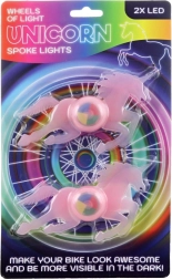 Vergroot je zichtbaarheid en voeg een vleugje magie toe aan je fietstocht met deze stijlvolle LED fietslichtjes met eenhoornthema. De set bevat twee lichtelementen die je eenvoudig aan het frame van je fiets bevestigt.