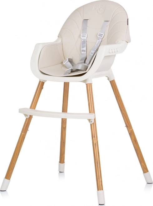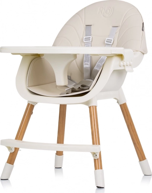 De Rio 2in1 kinderstoel biedt flexibele aanpassingsmogelijkheden, zodat het kan dienen als hoge of lage stoel, bedoeld voor zelfstandig zittende kinderen. Dankzij de comfortabele zit met leren bekleding is de stoel eenvoudig schoon te maken en geeft het een moderne uitstraling aan het interieur. 5-punts veiligheidsgordels zorgen voor maximale veiligheid voor uw kind tijdens het eten.
