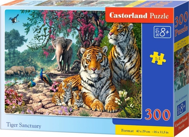 Puzzel Tijgeropvang neemt je mee naar een prachtig en rustig natuurgebied met schattige tijgers. Met deze puzzel van 300 stukjes kun je je onderdompelen in een ontspannende activiteit die tegelijkertijd concentratie en geduld versterkt.
